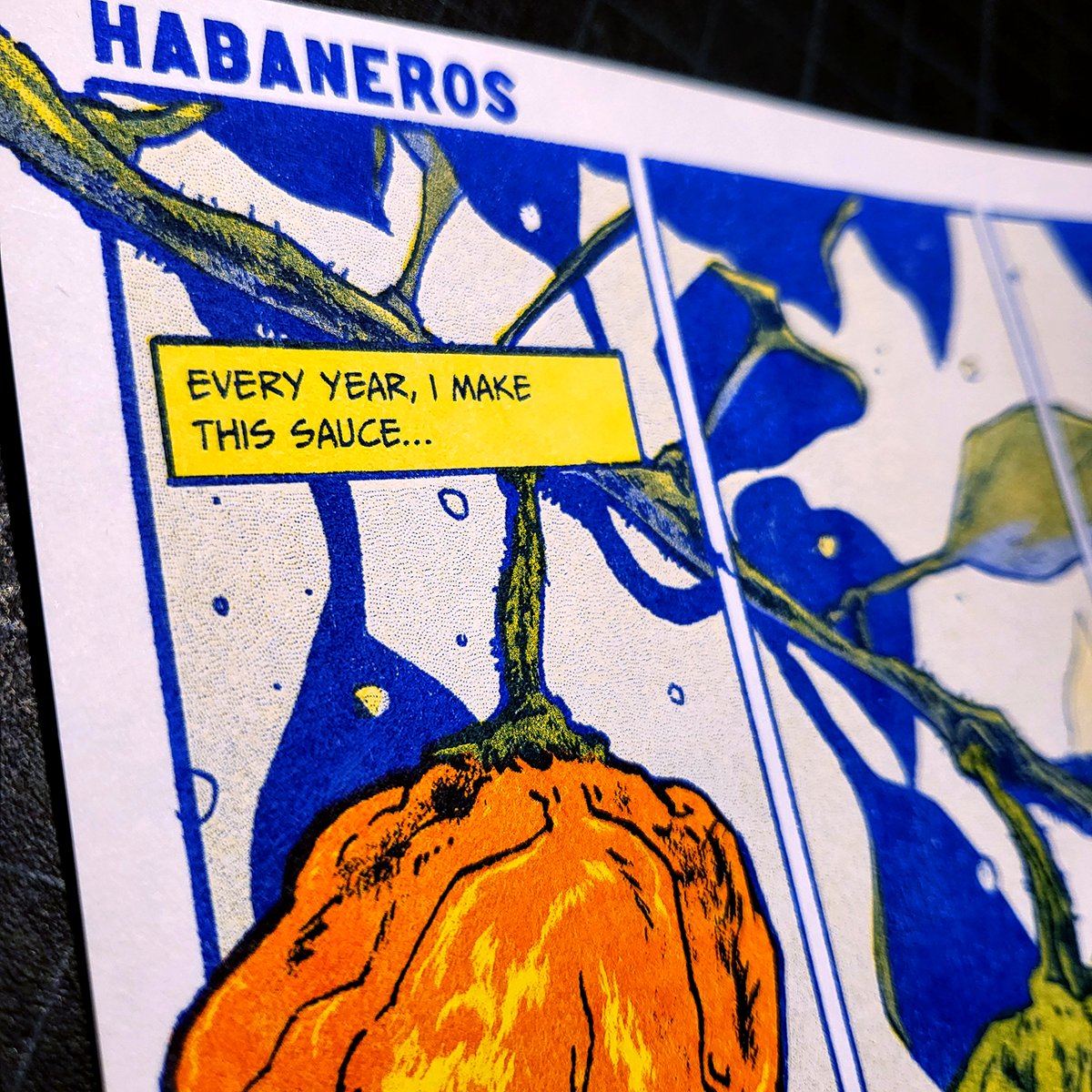 Risograph (SF9450 EIIU) printed on #80 Sulphite Paper with Lake Blue, Yellow, and Red ink at Small Works in Detroit, MI, USA. First Printing. 2025.